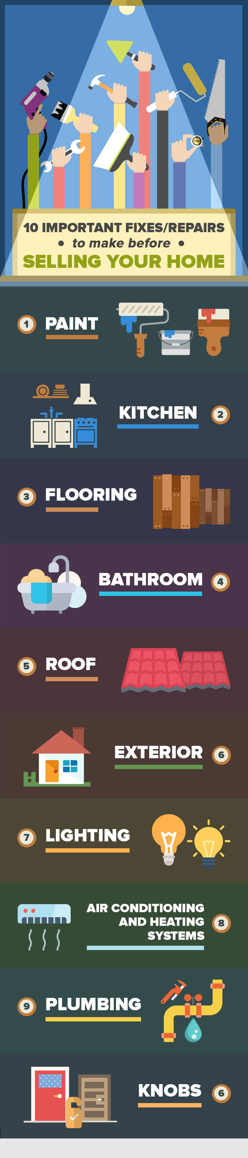 - Knobs – They may seem trivial but buyers could be critical of everything. If something as basic as a door knob is not working, buyers might think that the more important parts of the house are not working too.