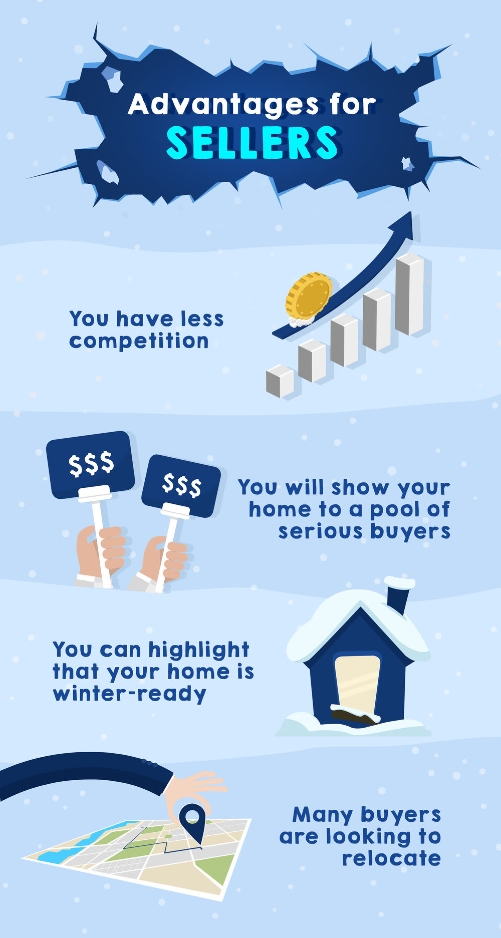 Since there are fewer homes on the market, you have less competition from other sellers. The low inventory creates increased competition among buyers, which generally results in higher sale prices. This is why winter can also be an ideal time to sell your home.