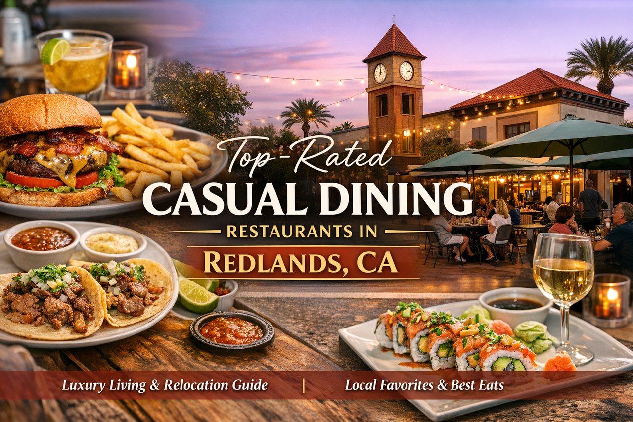 Explore top-rated casual dining restaurants in Redlands, CA. A luxury lifestyle guide for home buyers, sellers, and relocation clients.